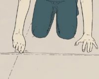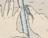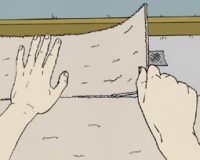 Snijd de tapijttegel af langs de afgetekende rand. Gebruik hiervoor een stanleymes en een stalen liniaal. Neem een stuk hardboard als ondergrond. Het afgesneden stuk past precies tussen de laatst gelegde tapijttegel en de muur.