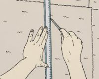 Als alle hele tapijttegels gelegd zijn, blijft er meestal nog een rand over bij de wanden van de ruimte. Hiervoor moet je een aantal tapijttegels op maat snijden. Leg op de laatst gelegde tapijttegel een nieuwe tegel.