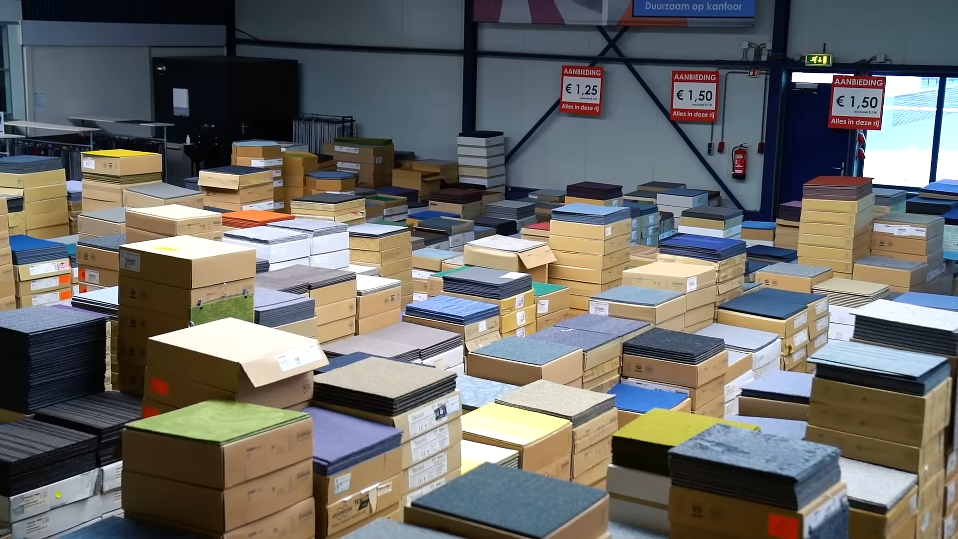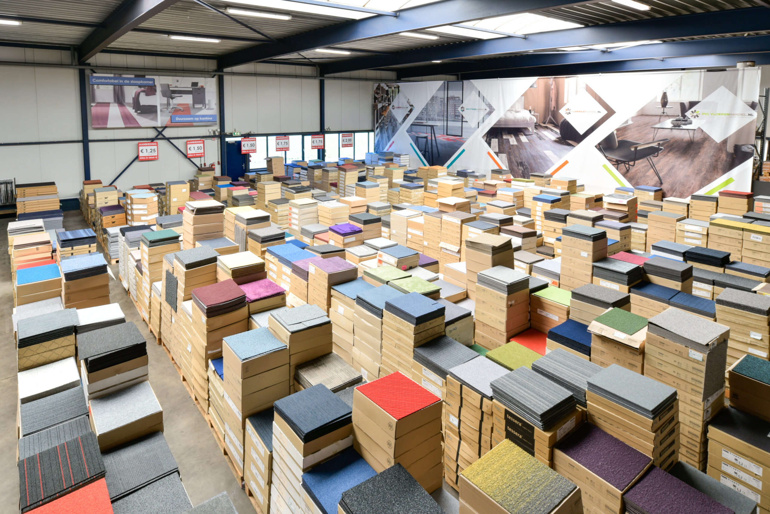 685 tapijttegels op voorraad (171.25 m²)